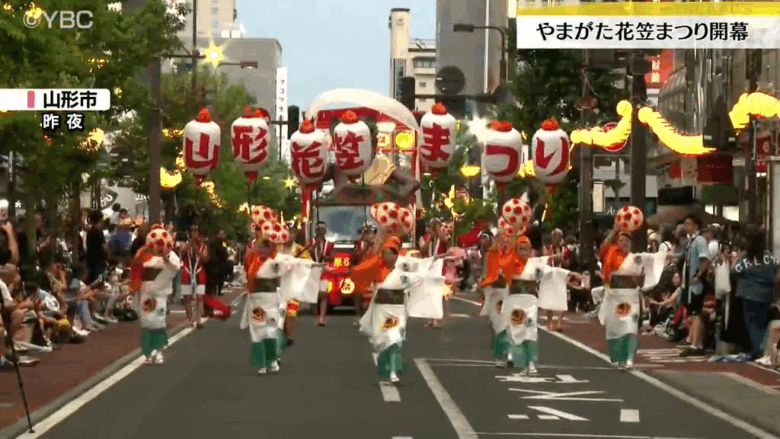 山形市で開催される花笠まつりは「山形花笠まつり」と呼ばれる。例年8月5日・6日・7日の3日間開催され、パレードは文翔館正面から南西方向に伸びる県道19号山形山寺線および国道112号(七日町商店街ほか)で開催される。